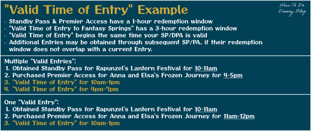 Though the entries are single-use, you may obtain additional entries by acquiring additional Standby Passes or Premier Access for Fantasy Springs attractions. The only caveat is your attraction redemption window must not be within a “Valid Time of Entry” you already have.