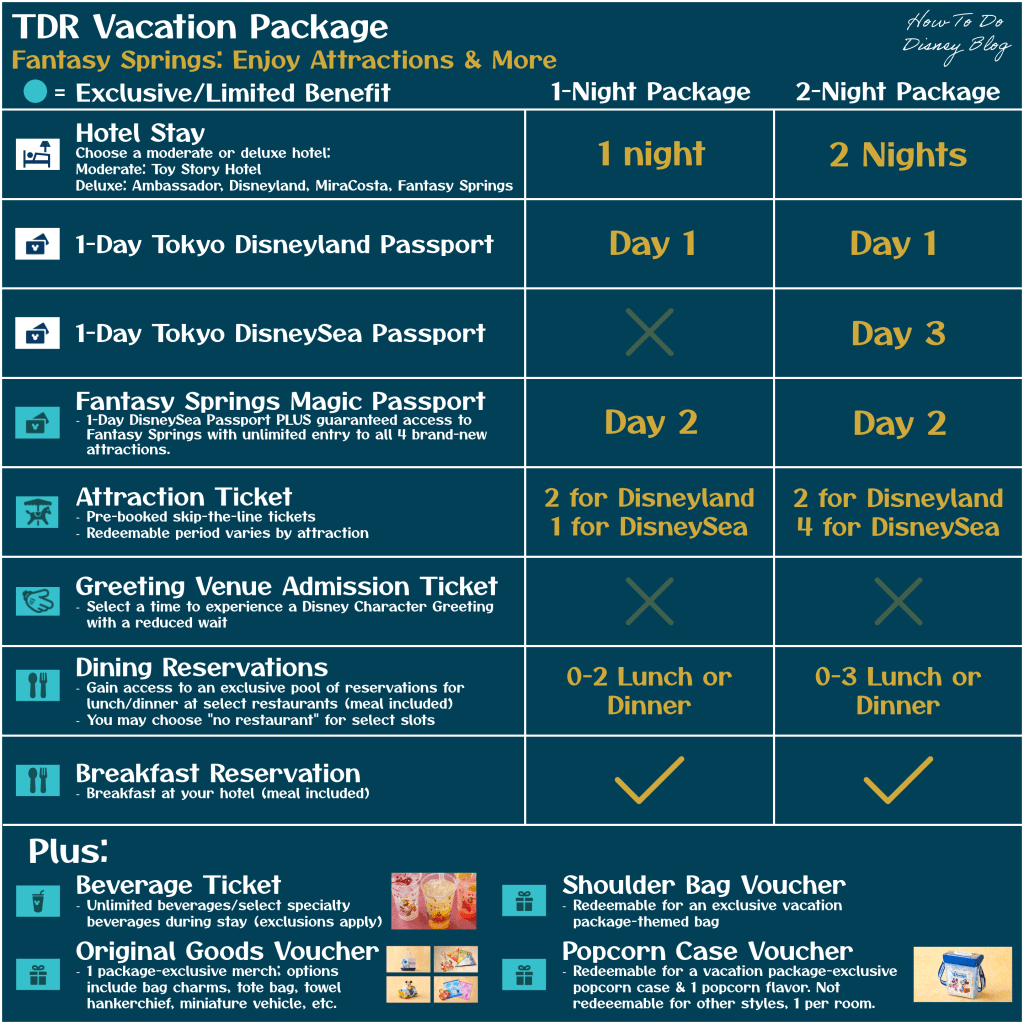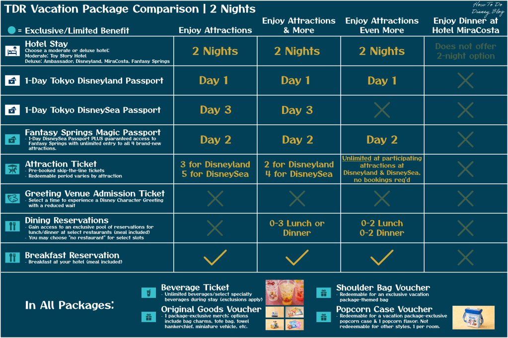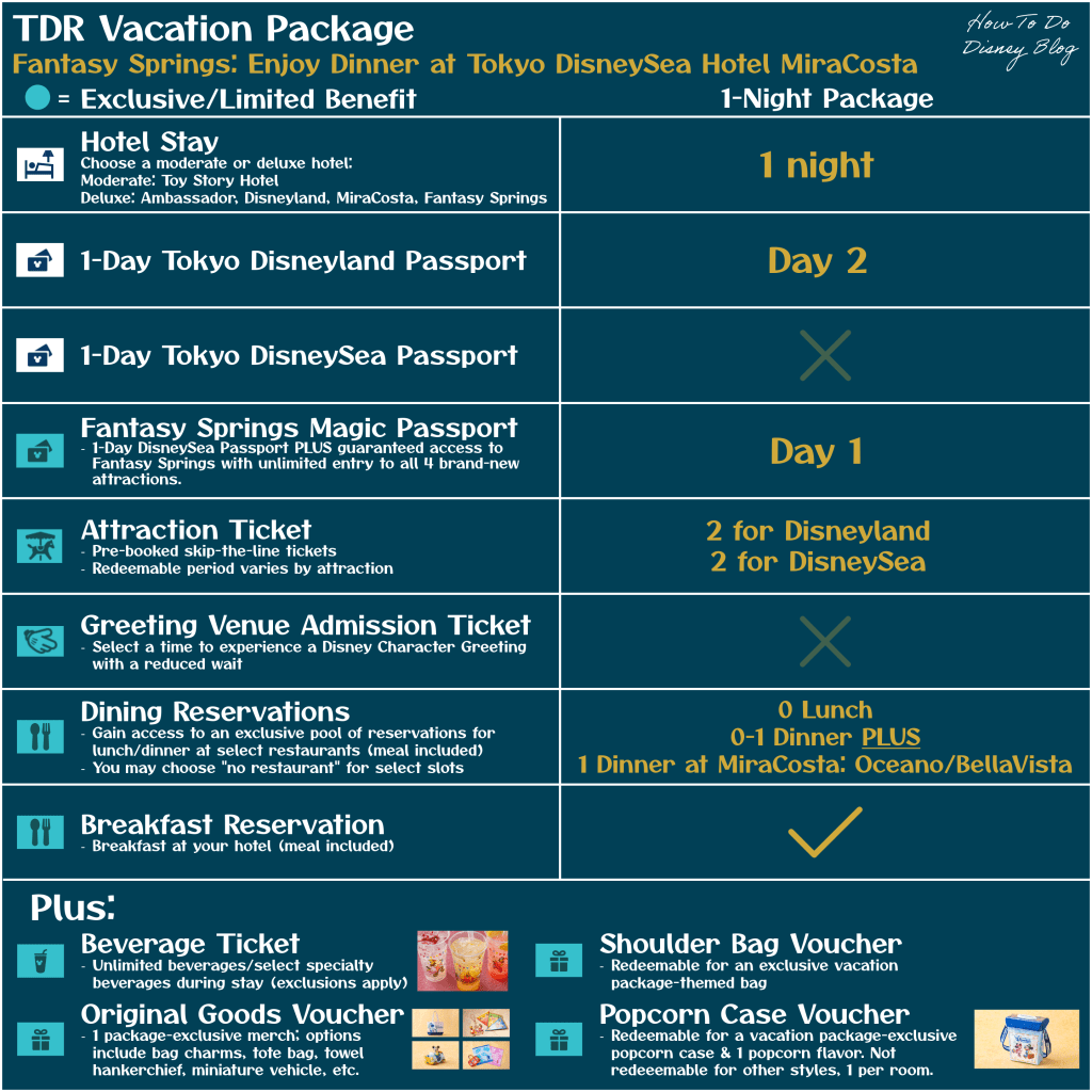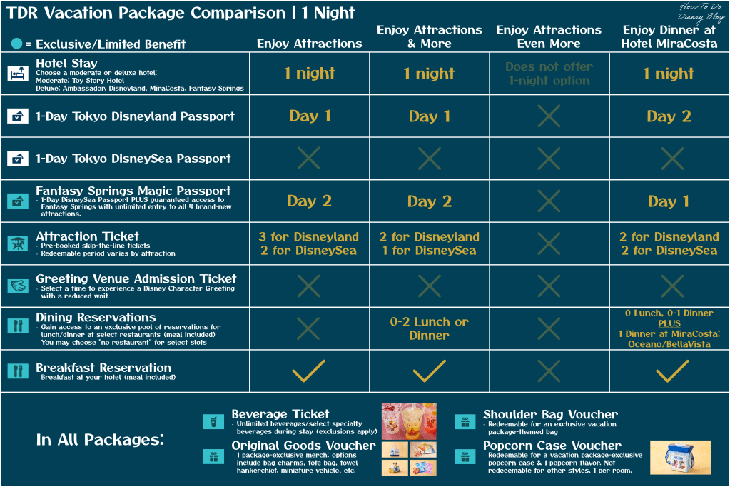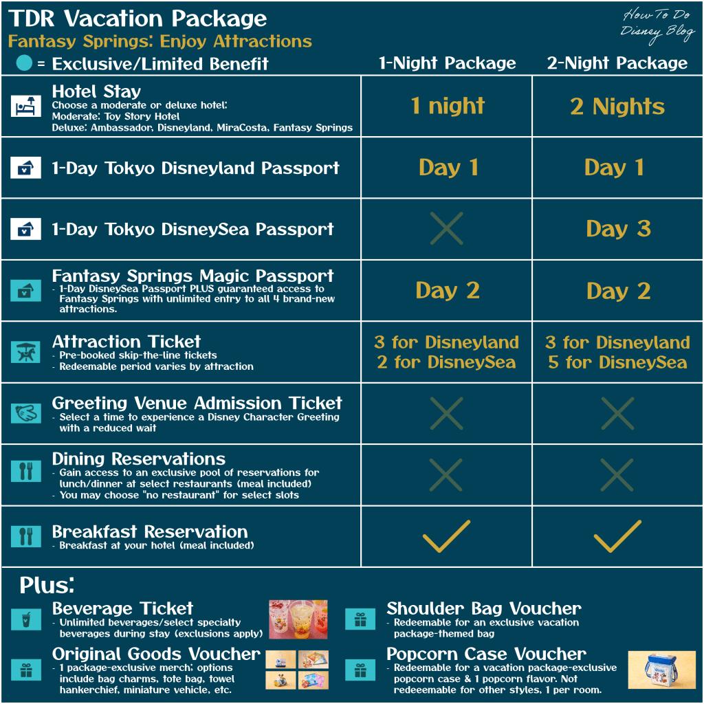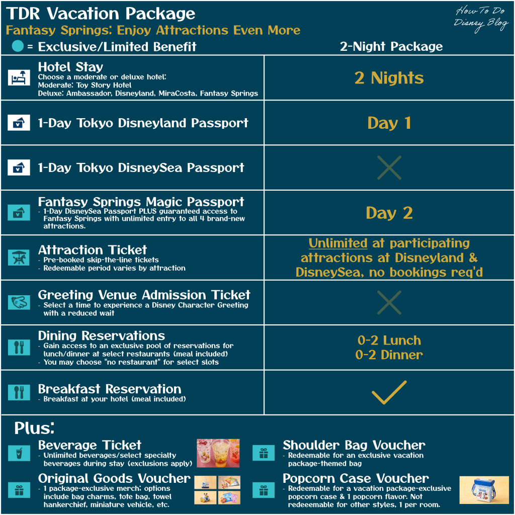 Otherwise, this package includes a few Attraction Tickets, the option to dine a second night, plus all the other hallmarks of a TDR Vacation Package.