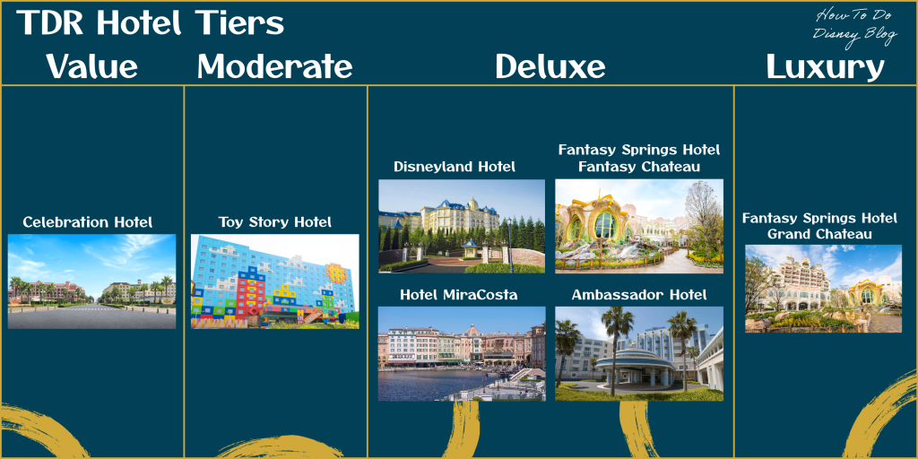 Included in your package is a stay at one of the 5 moderate or deluxe Tokyo Disney hotels. Note that Vacation Packages are not offered for Value (Celebration Hotel) and Luxury (Fantasy Springs Grand Chateau) hotel rooms. Thus, the “cheapest” hotel you can select is the Toy Story Hotel, a moderate.